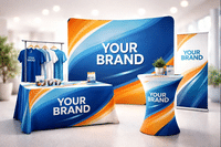 Les textiles tendus et les nappes personnalisées sont très efficaces pour créer un espace structuré et attractif.