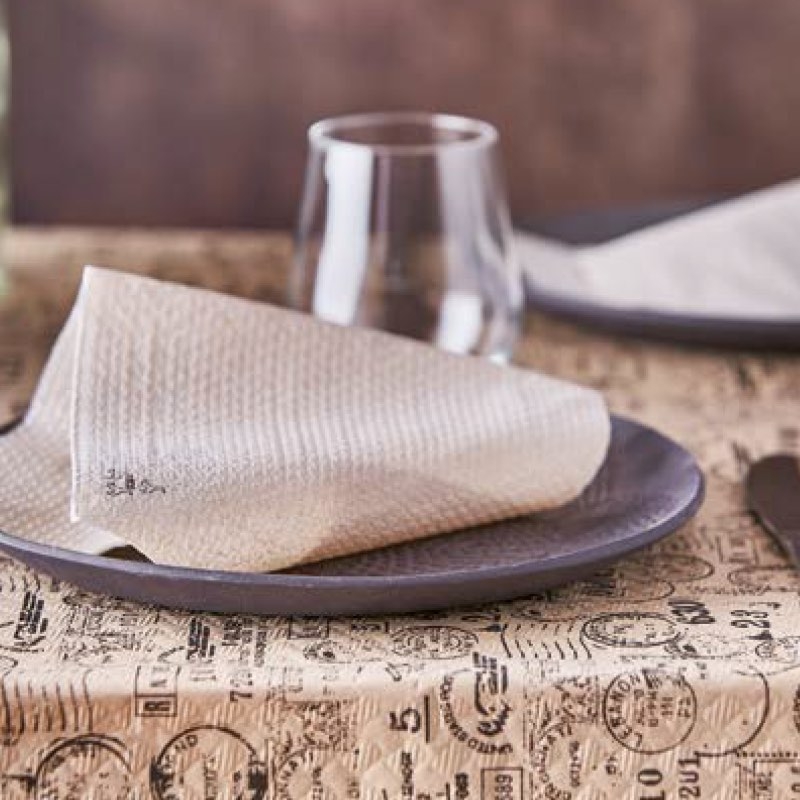 • Impression de qualité : Nappes imprimées 1 couleur (répétition de visuel jusqu’à 35 cm), sets de table imprimables en 1 à 3 couleurs.