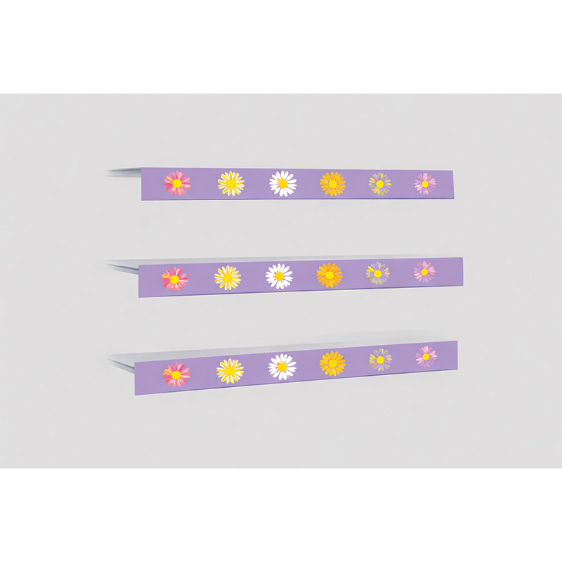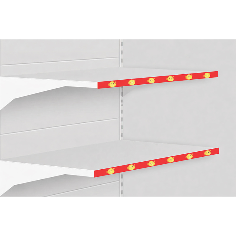 La mise en place de la bande de rive se fait facilement et rapidement. Elle s’installe aisément sur le bord des étagères sans entraver le rangement des articles. En outre, elle représente une option rentable pour mettre en valeur vos produits, car elle n’exige ni matériel sophistiqué, ni dépenses importantes. C’est une méthode efficace pour améliorer l’attrait de vos points de vente sans avoir à investir dans des options onéreuses.