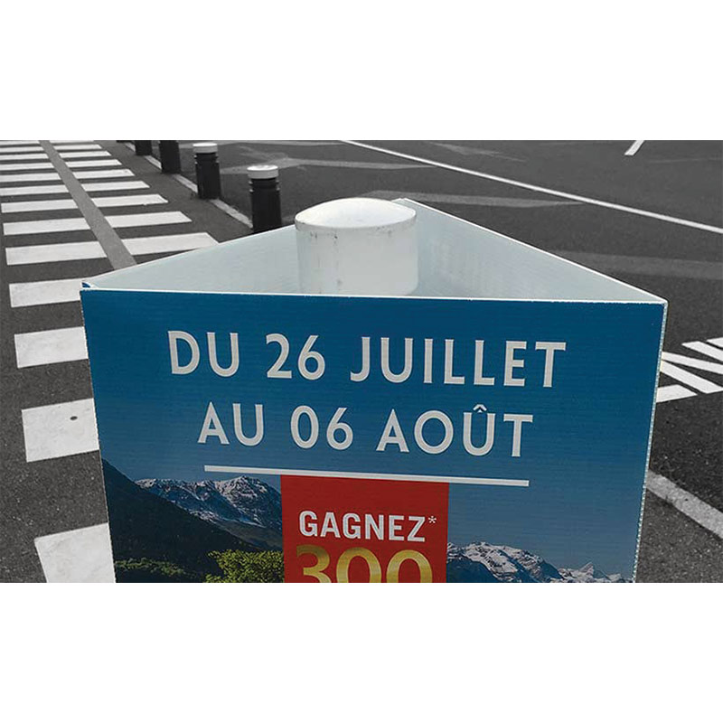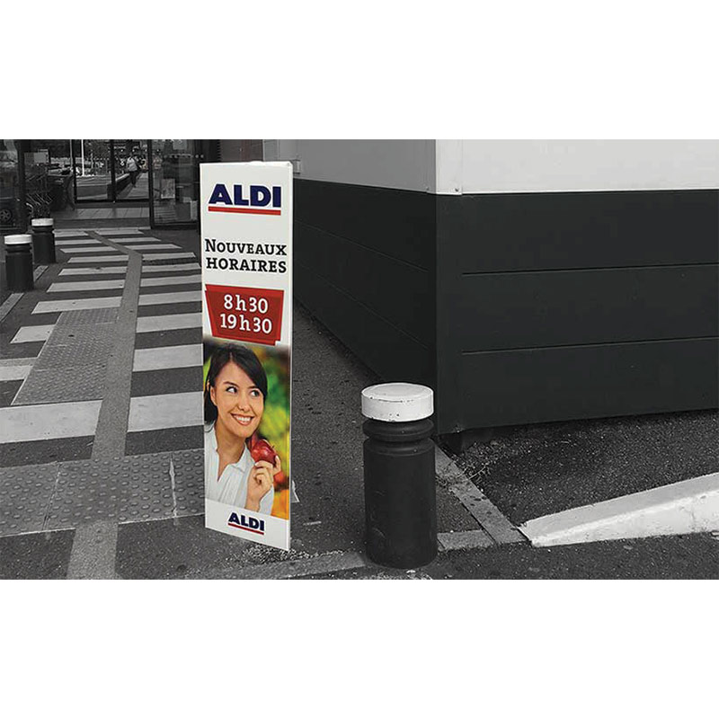 Ce support PLV, totalement adaptable, vous offre la possibilité de valoriser votre identité visuelle grâce à une impression d’excellente qualité. Proposé en divers formats personnalisés selon vos exigences, il s’ajuste idéalement à votre stratégie de marketing, augmentant votre présence sur le terrain et générant un fort impact visuel.