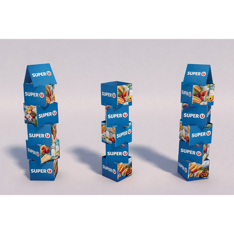 Le totem cubes de sol est une PLV originale composée de cubes empilés, idéale pour attirer l’attention en point de vente ou lors d’événements.