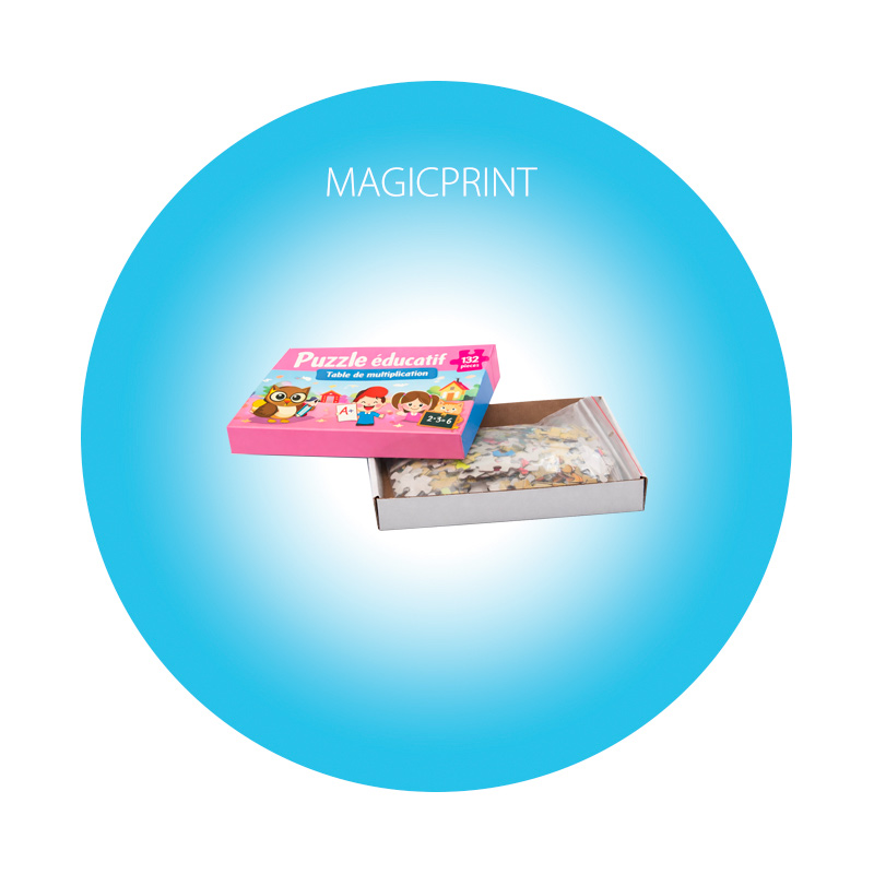 Utilisant la technologie d’impression numérique, chaque puzzle se voit doté d’une qualité d’image claire et précise, parfaitement appropriée aux photos, illustrations ou images de marque. La version finale propose une présentation soignée qui met en valeur votre image et amplifie l’effet de votre communication.