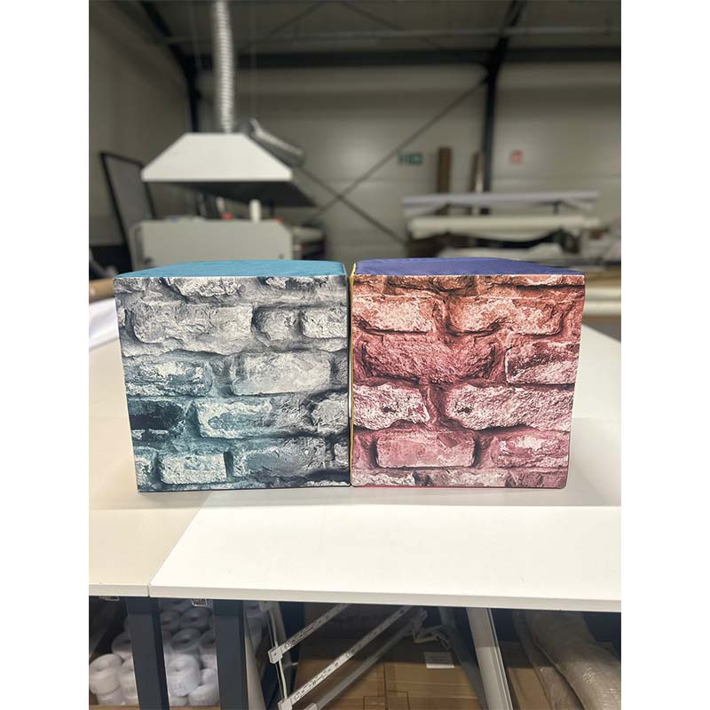 L’un des atouts majeurs de ces meubles publicitaires est la personnalisation totale du revêtement textile. Grâce à la sublimation, il est possible d’imprimer n’importe quel visuel :